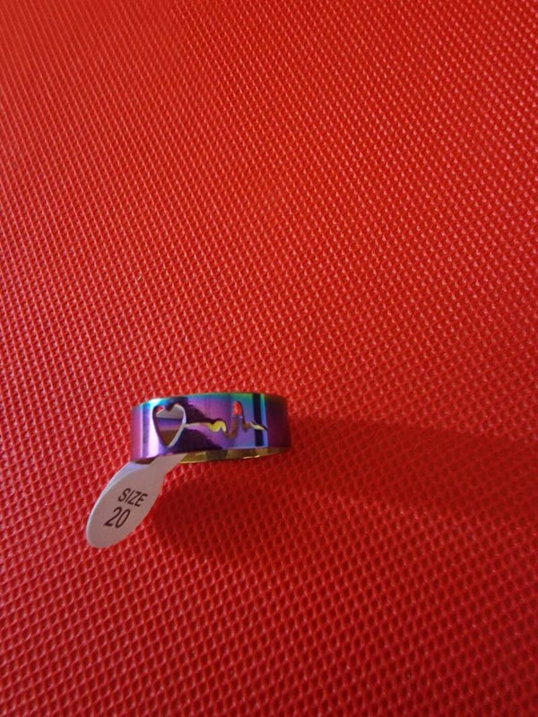 Anello unisex taglia 20 colore benzina disegno cuore battito